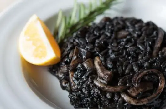 Los arroces, negro con marisco a banda, con fritada de tomate casero y huevo con plátano frito, blanco con calamares en su tinta, de verduritas...